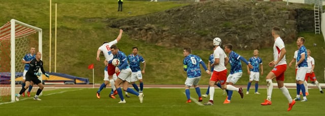 Sem ég skrifa það kemst Aron Freyr í hálffæri en fyrirgjöfin var aðeins of há og hann hittir ekki boltann nógu vel með einhverskonar karatesparki.