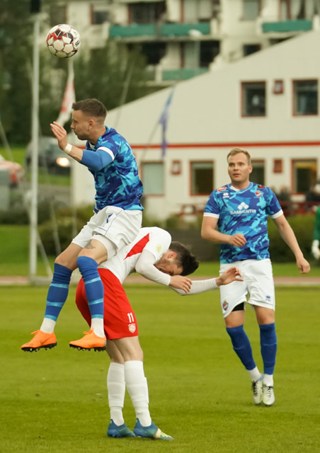 Jónas er felldur þegar hann reynir að sóla sig inn í teiginn, Gunnþór dæmir aukaspyrnu alveg á teigslínunni en Jónas er ekki sáttur, vill víti! Þetta var allavega mjög tæpt.