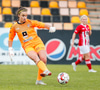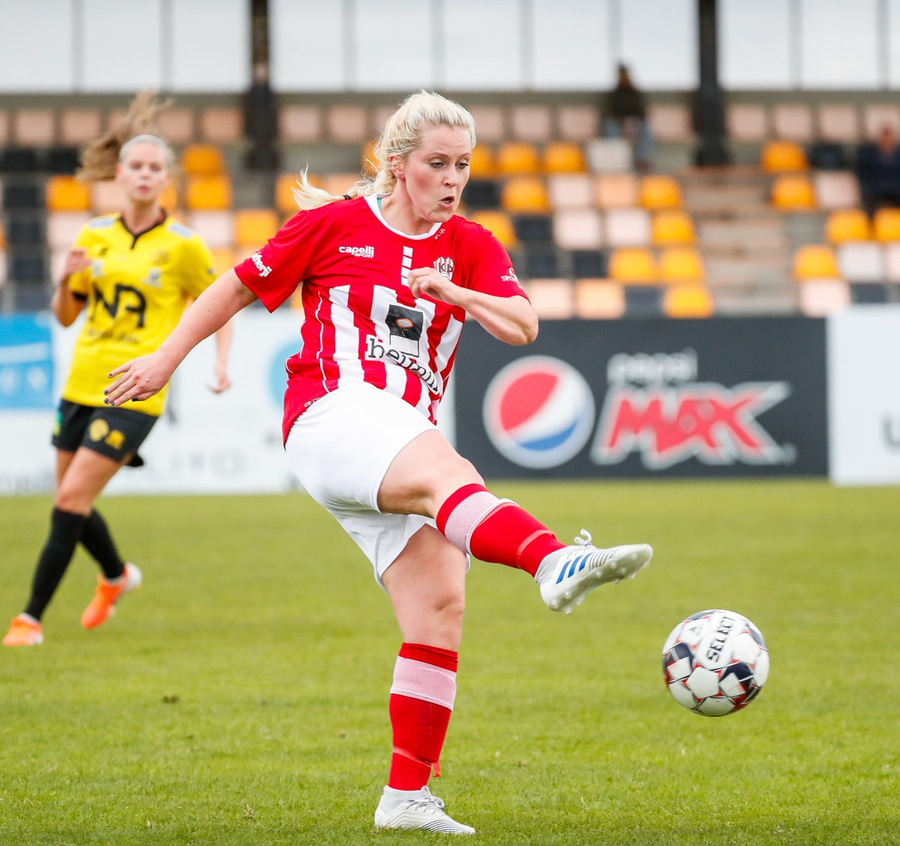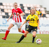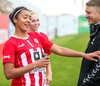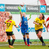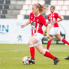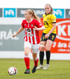 Hún pressar á Sigmundínu, vinnur af henni boltann og sleppur í gegn. Er með fjóra varnarmenn á eftir sér en nær skotinu sem Friðrika gerir vel í að verja í horn.