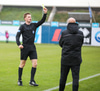 Banter á bekknum. Egill Atla og Aron Ýmir ekki sammála um hvort rétt hafi verið að dæma Lindu Líf brotlega eða ekki þegar hún reyndi að vinna boltann rétt utan vítateigs ÍA.