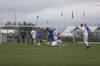 Hilmar Freyr með hörkuskot sem fer af varnarmanni og í stöngina. Þarna skall hurð nærri hælum!