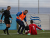 Sýndist þetta vera Fred sem fer illa með Kristó Scheving áður en hann nær sendingu fyrir markið sem Arnar Þór hreinsar í horn. Úr horninu verður lítið annað en klafs en Halldór Kristján liggur eftir, að því er virðist með höfuðhögg. Stendur sem betur fer upp að lokum og ætlar að halda leik áfram.