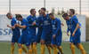 Hlynur stendur upp eftir aðhlynninguna. Frama fer í sókn og Tiago á flott skot sem fer rétt framhjá markinu.