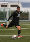 Hákon Rafn í skógarhlaup og Alex Freyr nær skotinu yfir hann en Arnar Þór réttur maður á réttum stað og nær að hreinsa boltann frá markinu.