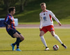 Stefán Árni kraftmikill. Vinnur boltann og spilar honum skemmtilega með Sólon. Að lokum reynir Sólon sendingu í svæði, en Aron Birkir er á undan Stefáni í boltann.