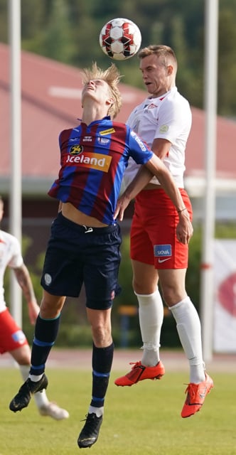 Ósvald með fína sendingu fyrir markið. Hjalti með skallann, en hann er framhjá markinu.