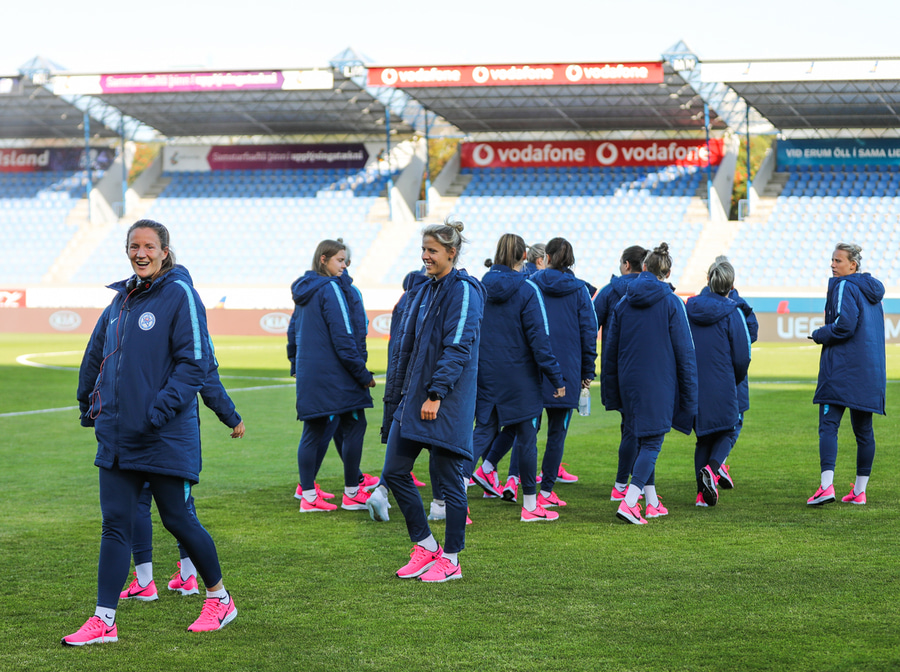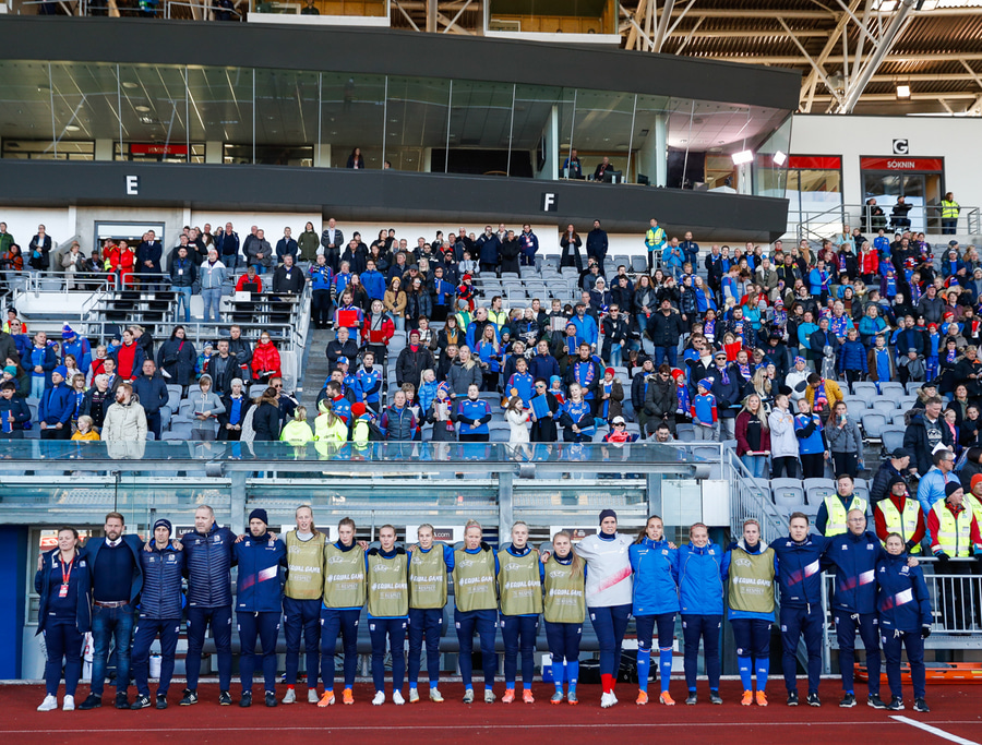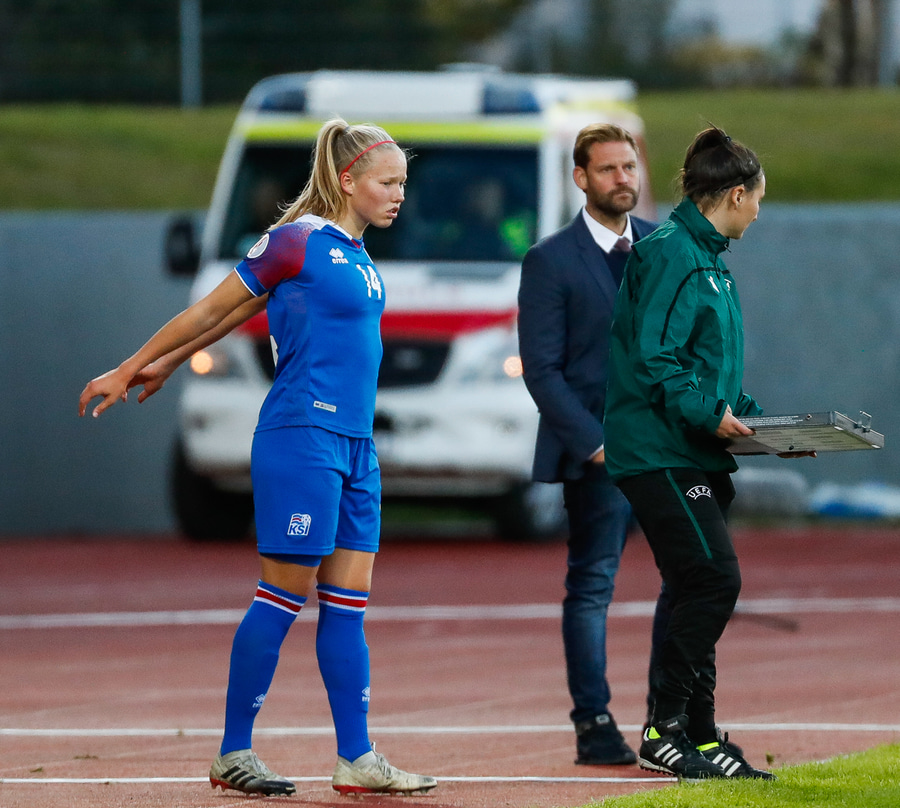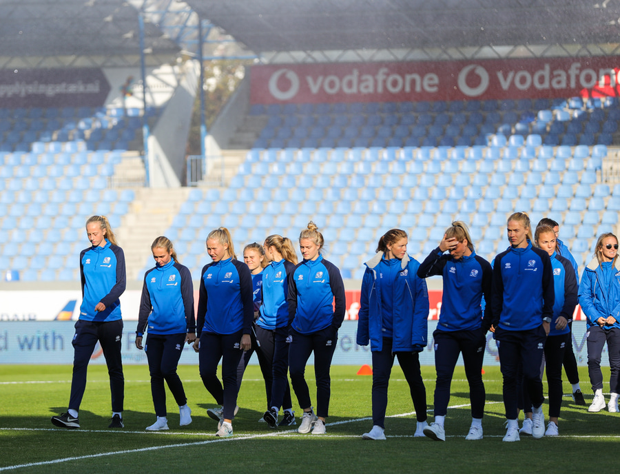 Ísland leikur með sorgarbönd í dag til minningar um Atla Eðvaldsson, goðsögn í íslenskri knattspyrnu, sem lést í dag eftir illvíg veikindi. Sif Atladóttir dóttir hans hefur dregið sig úr leikmannahópnum af þessum sökum. Fótbolti.net sendir innilegar samúðarkveðjur til fjölskyldu og vina Atla.