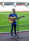 Sjálfur Ingó Veðurguð er mættur til að koma fólkinu í gang og syngja 2 lög. Fyrst tók hann Ísland er land þitt og nú er hann að syngja þjóðsöng íslenska landsliðsins Ég er kominn heim! Virkilega vel gert hjá honum!