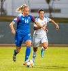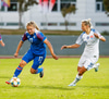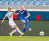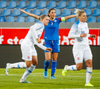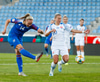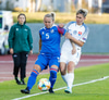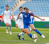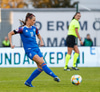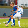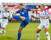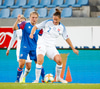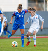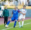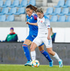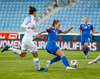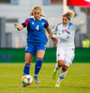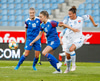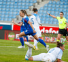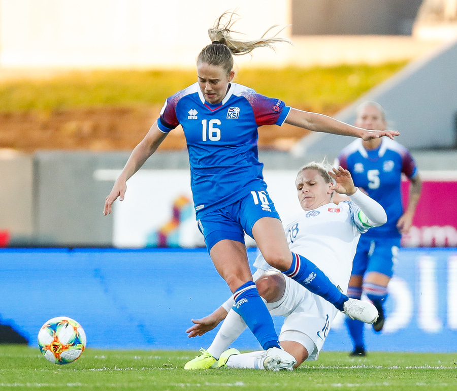 Fanndís brýtur á Partíciu Hímírová. Slóvakía fær aukaspyrnu a miðjum vallarhelmingi þeirra.