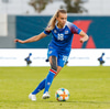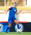 Dagný keyrir upp kantinn og nær að koma boltanum fyrir.