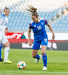 Hallbera með hættulega sendingu fyrir mark Slóvakíu. Maria kemur út á síðustu stundu og nær til boltans.