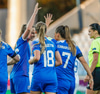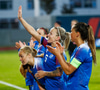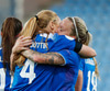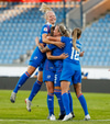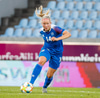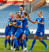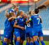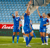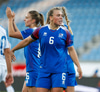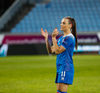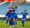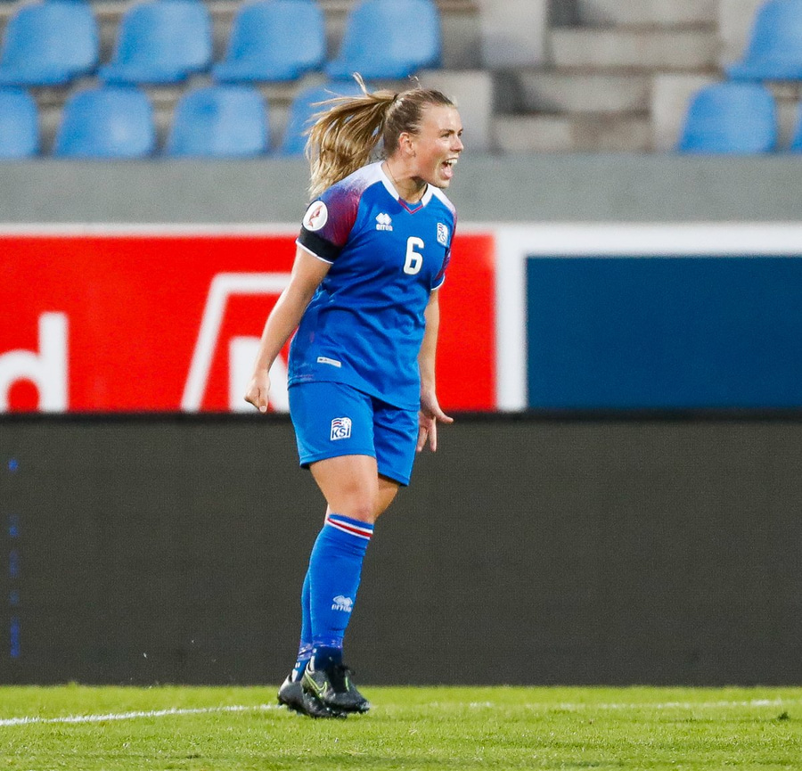 Glódís spyrnir löngum bolta fram sem fer í bakið á Diana. Mér sýnist að Gunnhildur nær að skalla boltan til Elínar. Hún gerir vel og fer framhjá Diana og leggur hann í fjærhornið. Vel gert!