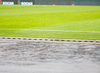 Í sömu andrá mætir íslenska liðið út í upphitun. Það mun líklega ekki taka mjög langan tíma fyrir leikmenn að blotna í gegn.