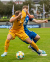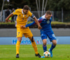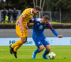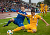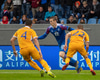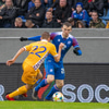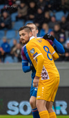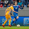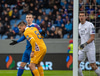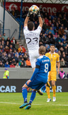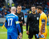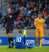 Catalin Carp fellir Ara Frey á leið sinni inn í vítateig og Carp fær að líta gula spjaldið.
