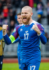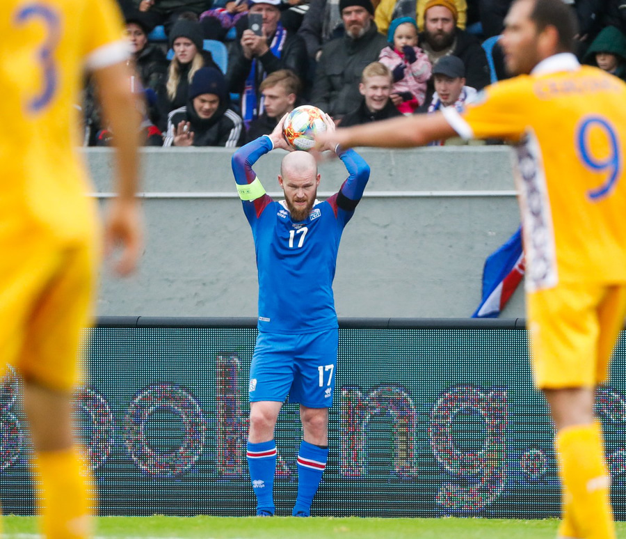 Á miðjunni eru Aron Einar og Gylfi og á köntunum eru Arnór Ingvi Traustason og Birkir Bjarnason. Framlínan minnir óneitanlega á EM 2016. Kolbeinn Sigþórsson og Jón Daði Böðvarsson eru fremstir.