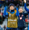Ingó í íslensku landsliðstreyjunni með derhúfu í íslensku fánalitunum. Þetta er bara gæsahúð!