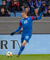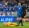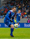 Ef að hann fær að líta gult spjald í dag þá mun hann taka út leikbann í leiknum gegn Albaníu á þriðjudag.