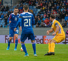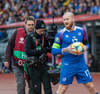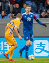 Gylfi setur boltann meðfram jörðinni á Kolbein sem setur hann aftur á Gylfa. Gylfi á fyrirgjöf sem er skölluð burt, boltinn berst á Arnór Ingva sem lúrir fyrir utan teig og skýtur á markið en boltinn fer yfir.
