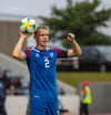 Fær boltann úti hægra megin og hefur nægan tíma til þess að koma með fyrirgjöf sem og hann gerir, alltof mikill kraftur í sendingunni og hún endar í innkasti hinum megin.