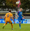 Hjörtur með fyrirgjöf frá hægri, beint á kollinn á Jón Daða sem að stekkur hæst í teignum en skallinn frá Jóni rétt yfir markið.