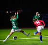 Hlín kemst utaná Áslaugu og neglir boltanum fyrir þar sem Selma Sól tæklar boltann í Heiðdísi og þaðan í smettið á Selmu.