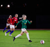 Alexandra sendir boltann fast fyrir og Elísa kixar hann í horn.