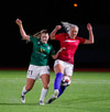Margrét Lára rífur í Selmu Sól hérna á miðjunni og fær réttilega gult.