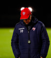 Liðin eru að hita, vökvakerfið er búið að bleyta vel í vellinum og það eru 25 mínútur í þennan stærsta leik tímabilsins!