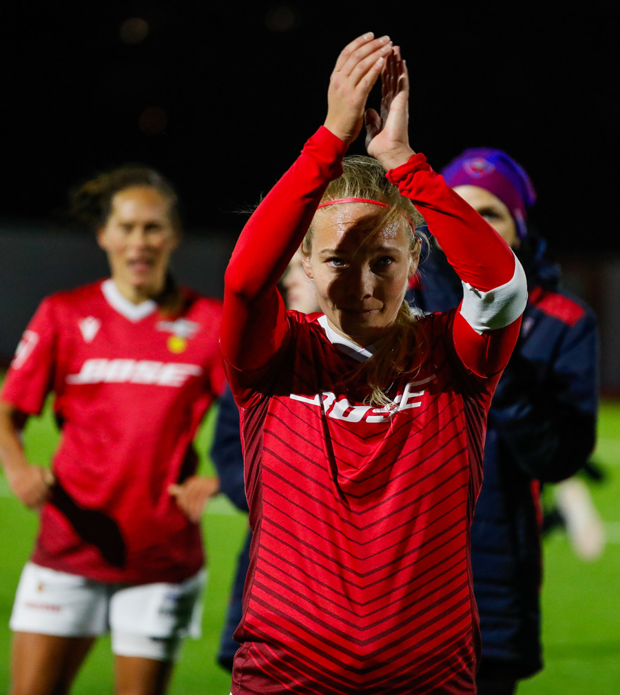 Agla María tekur enn eina afleita hornspyrnuna hér í dag... boltinn bara beint afturfyrir!