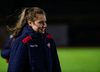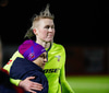 Agla tekur spyrnuna en Sandra blakar boltann frá, Agla nær honum aftur og sendir fyrir en Berglind skallar boltann bara upp og Sandra grípur.
