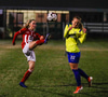 Olivia á fyrirgjöf frá vinstri og Margrét Sveins vinnur skallann en hann er máttlaus og beint á Veronicu.