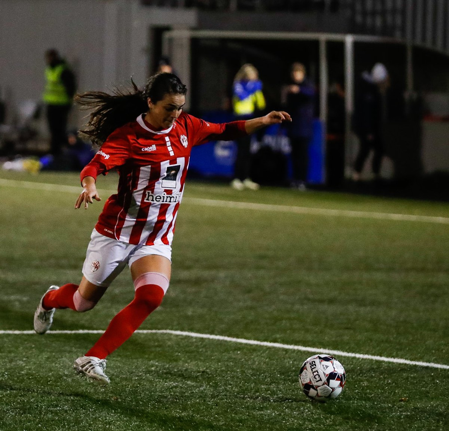 Linda Líf leggur upp enn eitt færið fyrir liðsfélagana en Lauren brennir af af markteig!