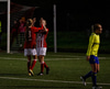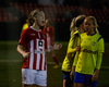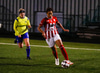 Katrín Rut Kvaran reynir skot hægra megin úr teignum eftir fínan samleik við Lindu Líf. Skotið þó máttlaust og beint á Veronicu í markinu.