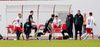 Mér sýnist Arnar Geir Halldórsson vera meiddur og þurfa að koma útaf. Sveinn Þór kallar í Agnar Darra Sverrisson sem að gerir sig kláran.