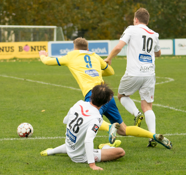 Castillion sloppinn í gegn og rennir boltanum á Valdimar sem skýtur framhjá úr góðri stöðu. Hefði geta gert miklu betur.