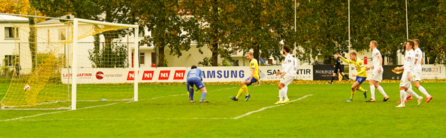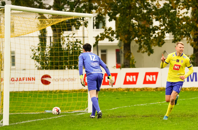 Nökkvi búinn að vera frábær í dag! Þessi sending rataði beint á Elfar sem var fyrir miðju marki og kláraði snyrtilega í vinstra hornið.