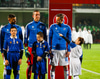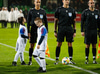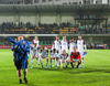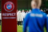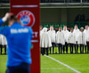 Þjóðsöngvarnir eru að baki en það var moldóvskur kvennakór sem söng þá! Náðu íslenska söngnum bara nokkuð vel! Börn með downs heilkenni sem fylgdu liðunum út á völlinn og skemmtu sér gríðarlega vel meðan þjóðsöngvarnir voru sungnir.