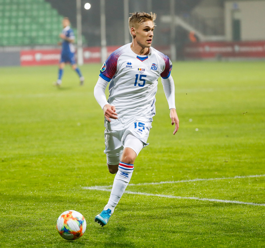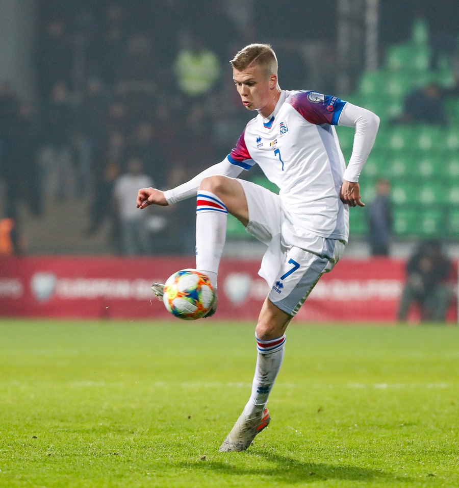 Mikael Anderson leikur sinn fyrsta byrjunarliðsleik fyrir A-landsliðið en Arnór Sigurðsson er á hinum kantinum.