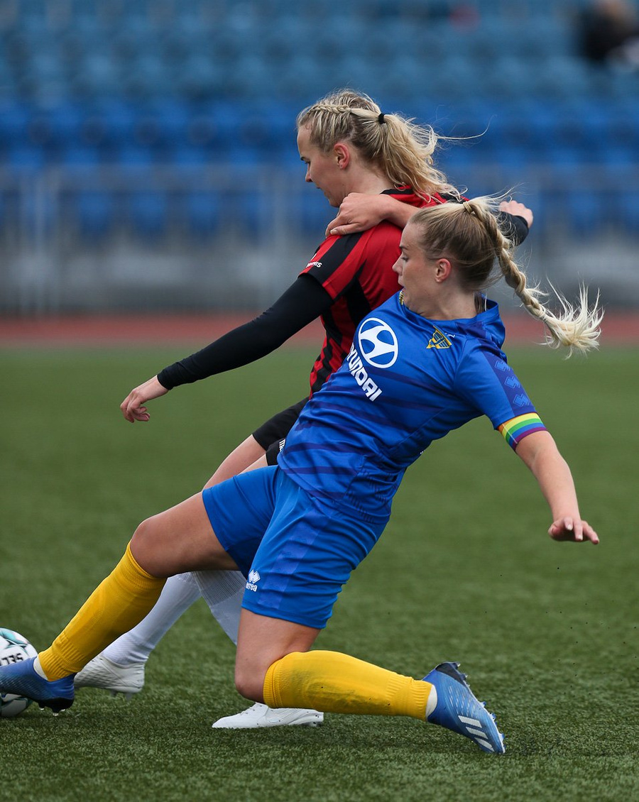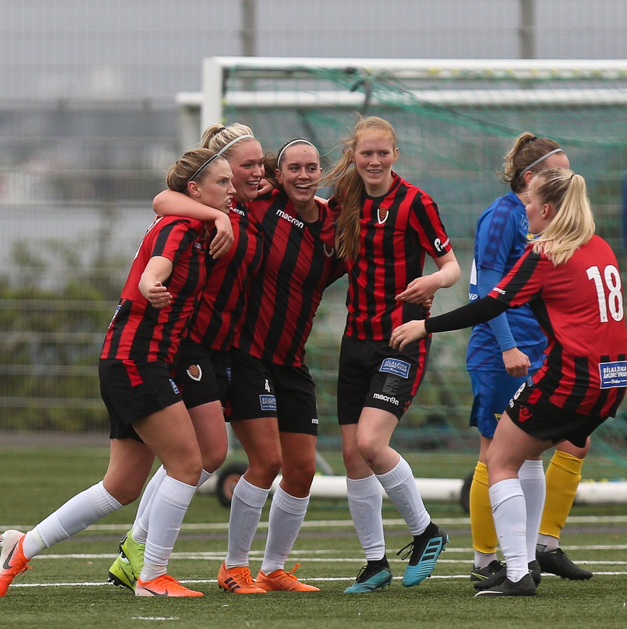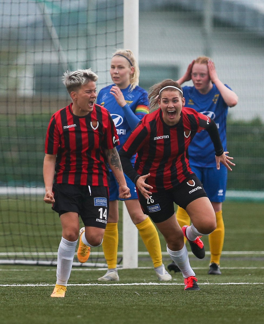 Mér sýndist að Brynhildur skaut í stöngina. Nadía nær frákastinu og gefur hann aftur á Brynhildi sem kemur boltanum í markið.