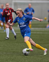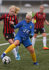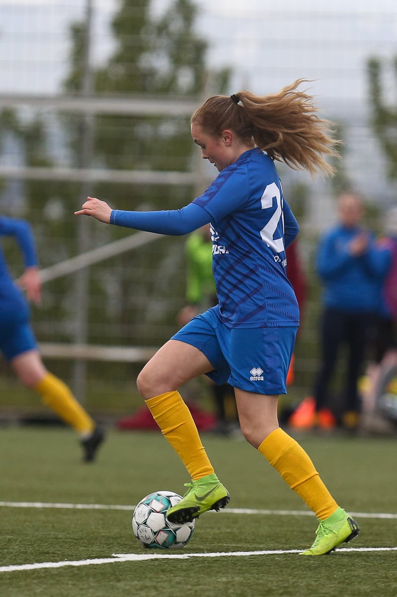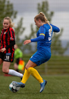 María Lovísa komin ein á móti Þórönnu. Hún nær skoti en það fer beint á Höllu í markinu.