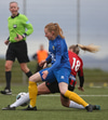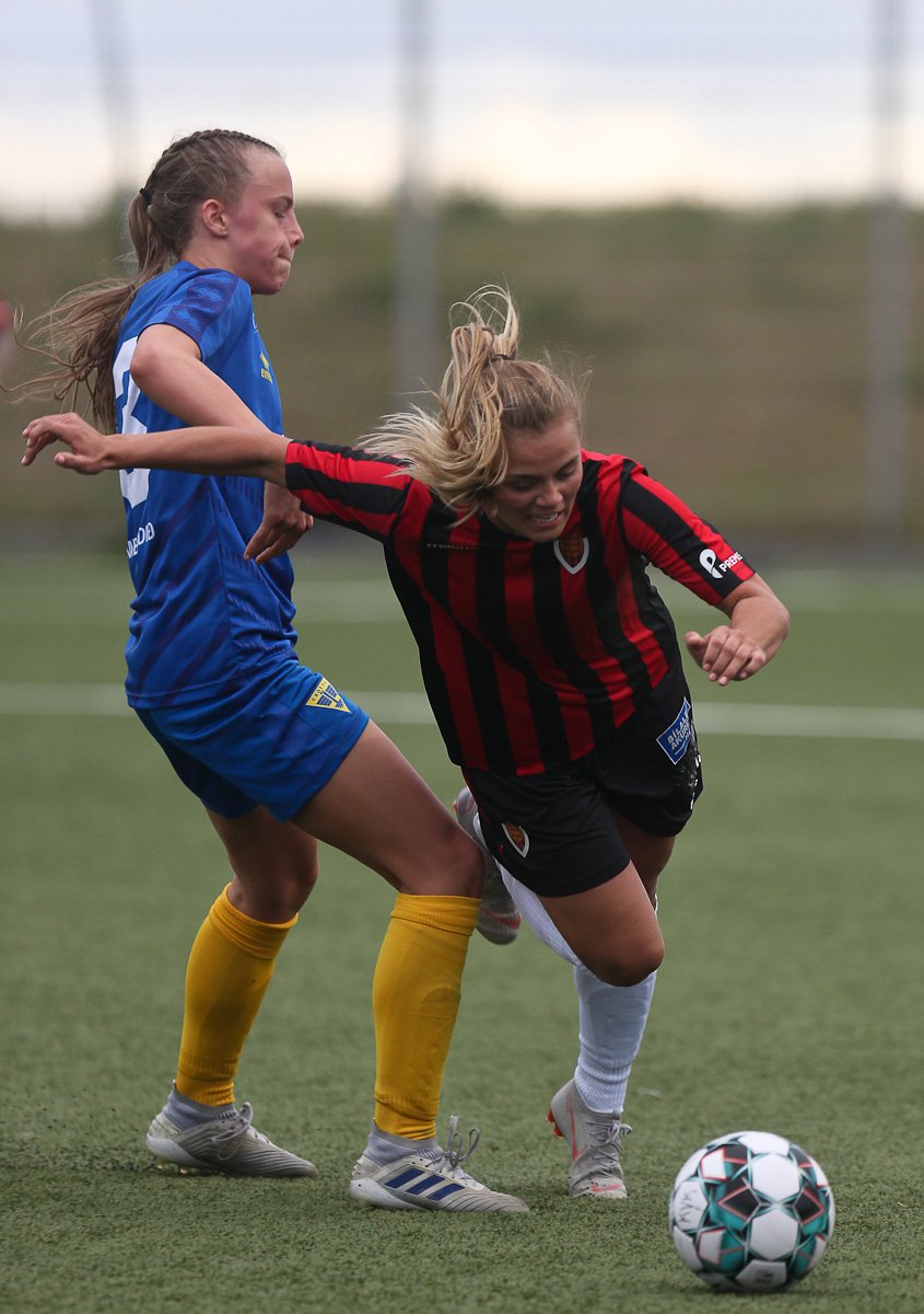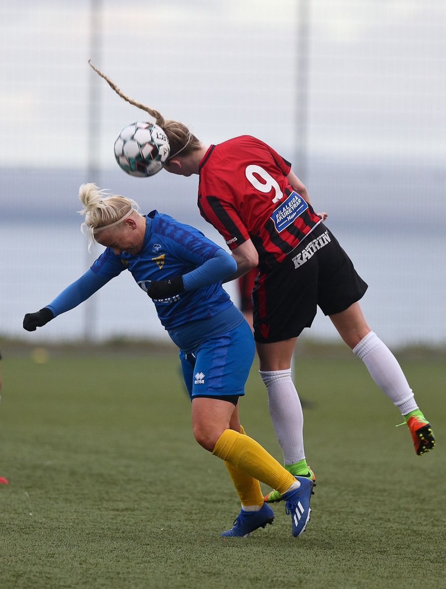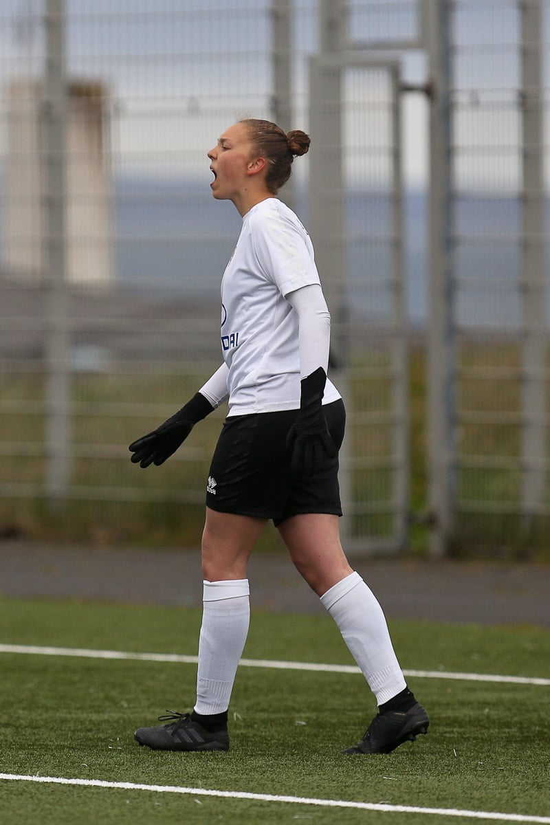Frábær bolti hjá Telmu Sif inn á teiginn. Brynhildur Vala var hinsvegar rangstæð og skallar hann langt yfir.