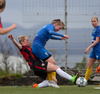 Tinna er ein á kantinum og fær mikinn tíma til að setja boltann inn í. Þar reynir Halla að ná í boltann en missir hann og Signý gerir vel og setur hann í markið. Vel gert!