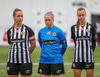 Dóra og Fanndís með skemmtilega útfærslu af horni. Fanndís nær fyrirgjöf en Ingibjörg grípur þennan vel