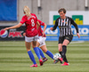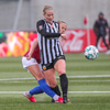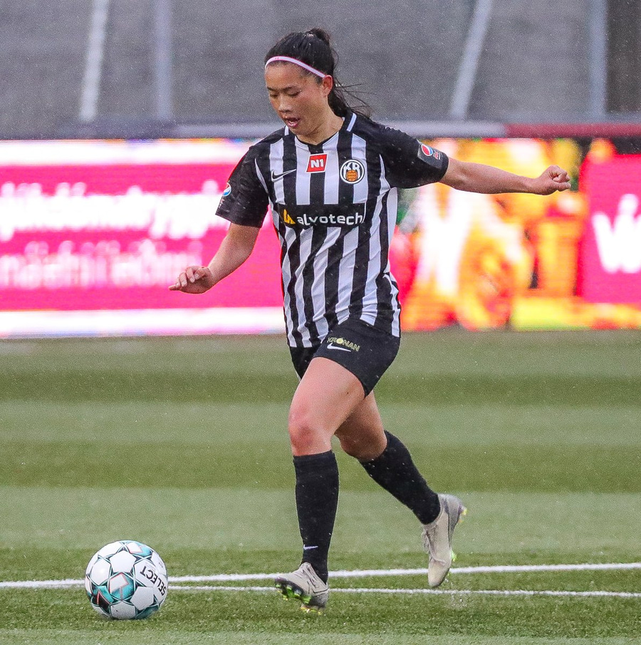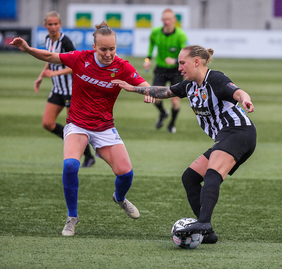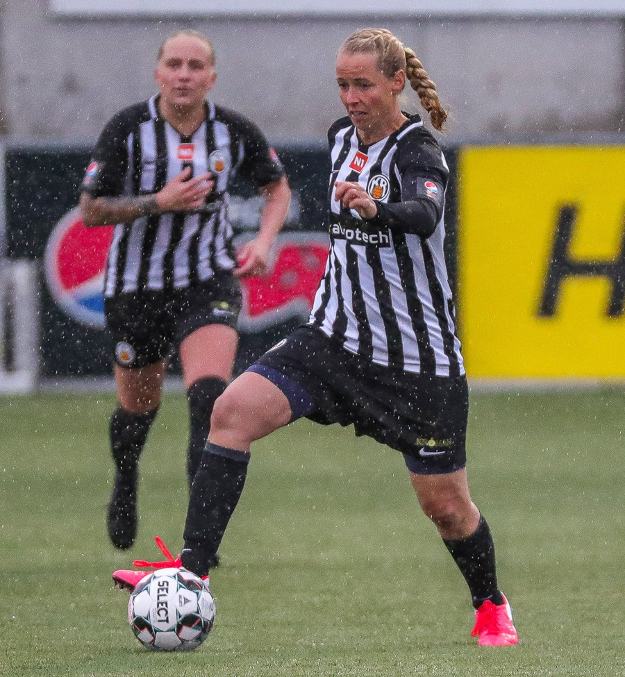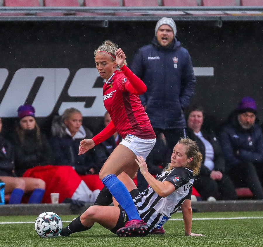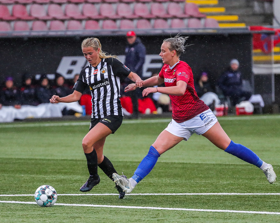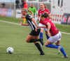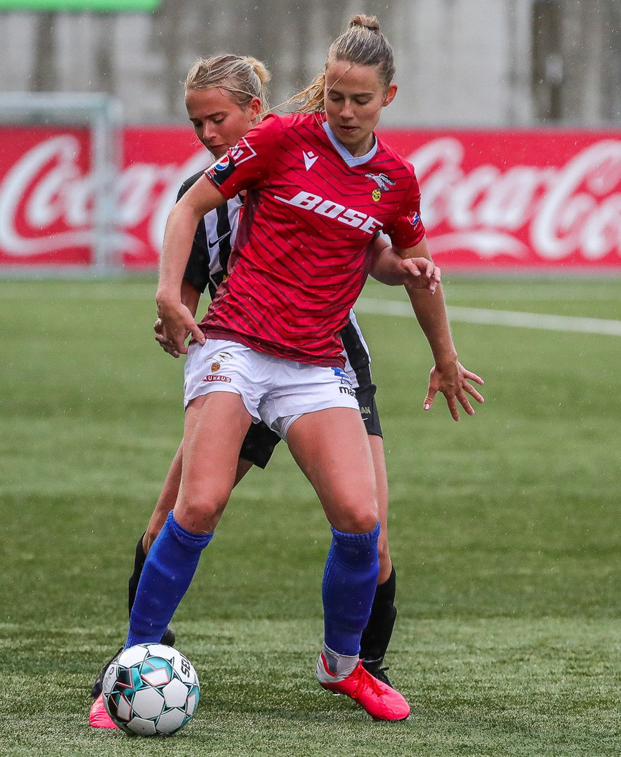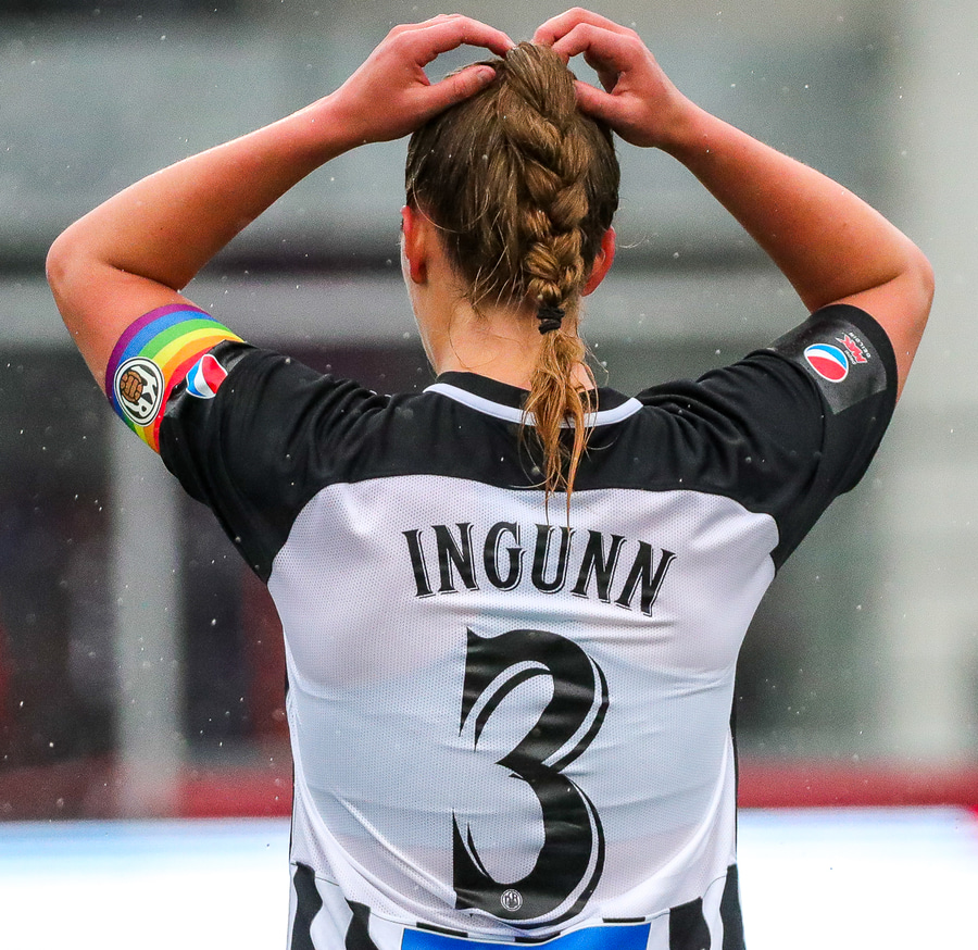 Vel gert Elín Metta! Snýr Þórunni Helgu svakalega snyrtilega af sér og setur hann út til hægri á Hlín. Nær sendingu fyrir. Boltinn rúllar svo framhjá fjærstönginni