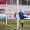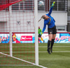 Hallbera með misheppnaða hreinsun. Beint í fæturnar á Ölmu. Hún keyrir bara á þær, fer framhjá varnarmanni og nær skoti. Boltinn hrekkur út á Katrínu Ómars sem nær góðu skoti en niðri framhjá hægra megin