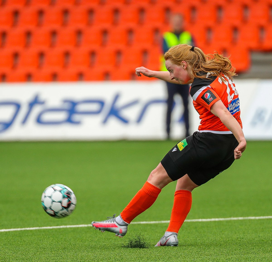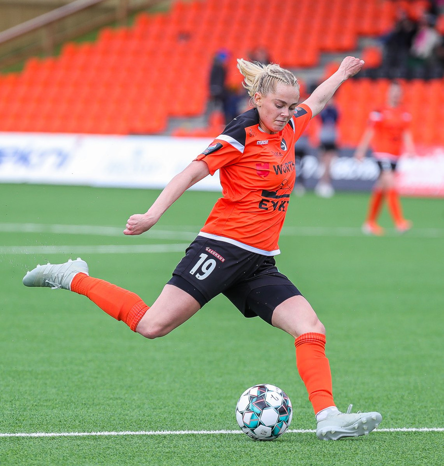 Úff. Þarna átti Magdalena að gera betur. Hólmfríður leggur boltann út í skot á hana en Magdalena sem þykir ansi sparkviss neglir boltanum hátt yfir.