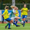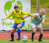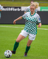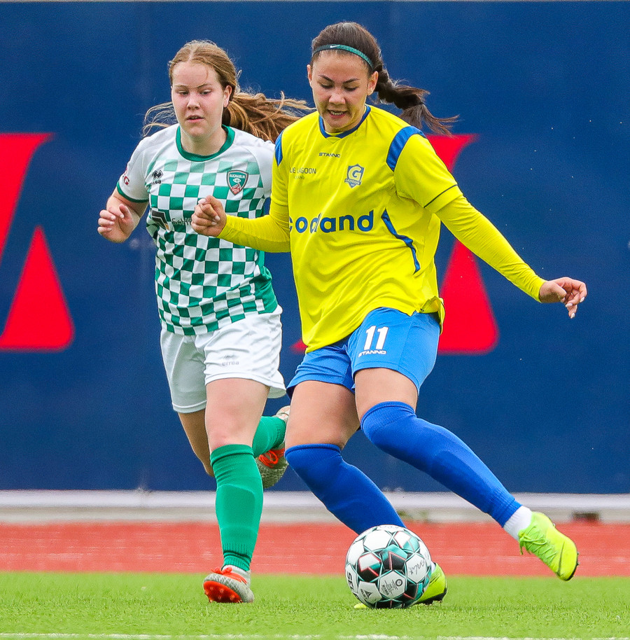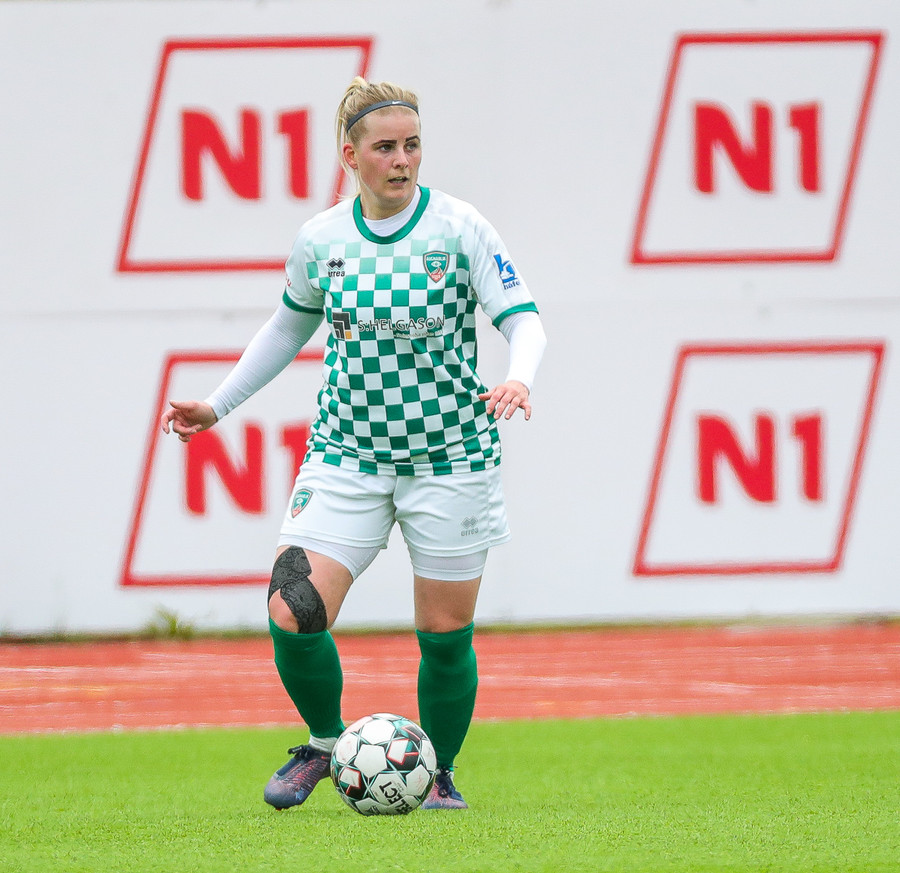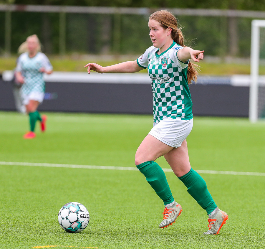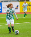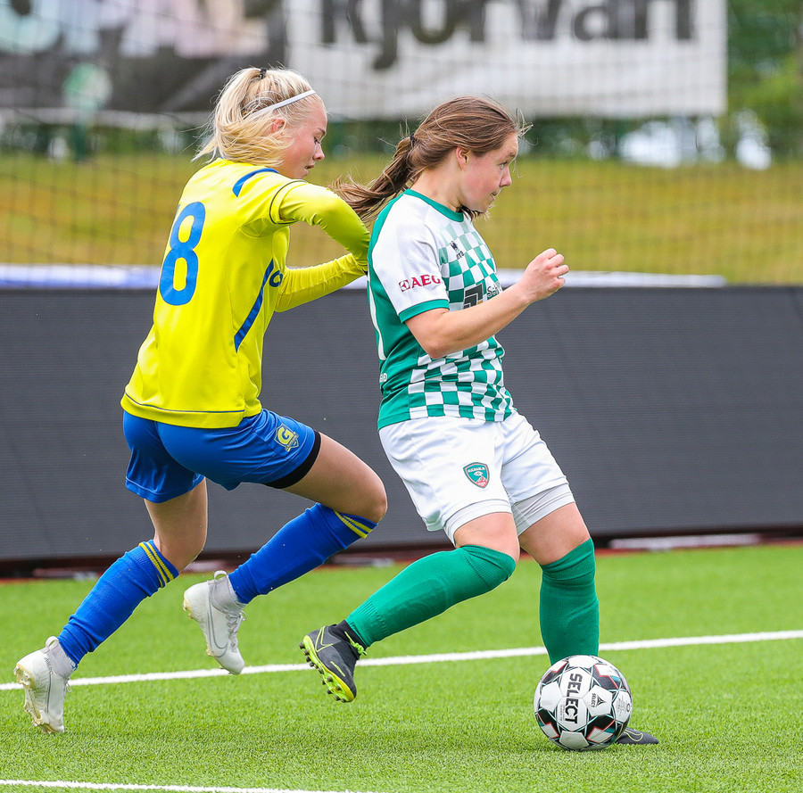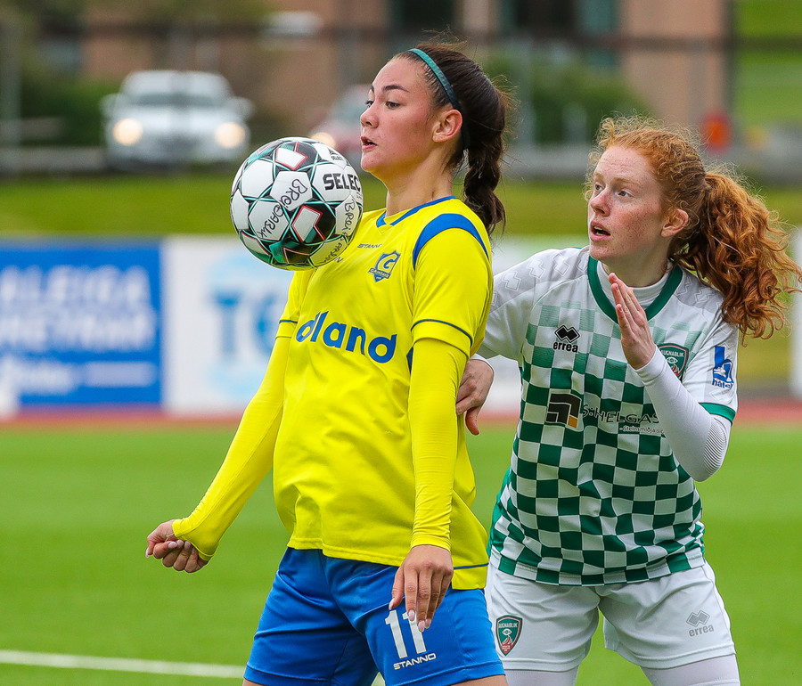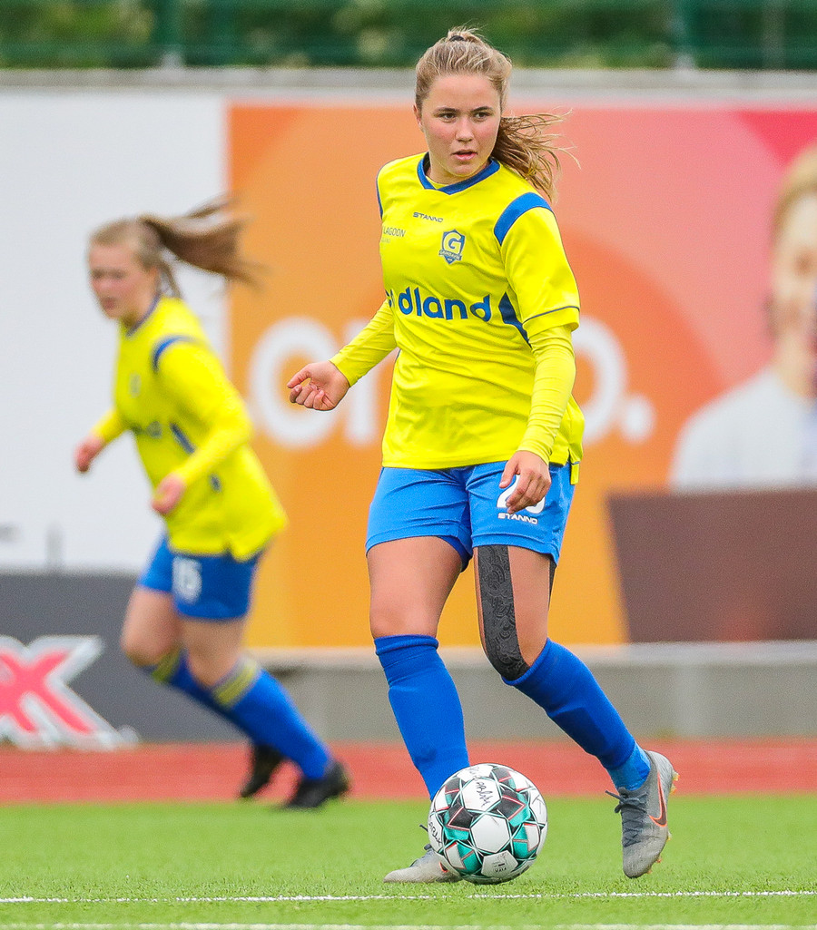 Vigdís fer illa með tvo varnarmenn en í staðinn fyrir að skjóta á markið reynir hún að senda til hliðar en samherji kemst ekki í boltann.