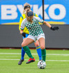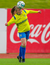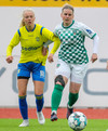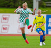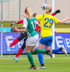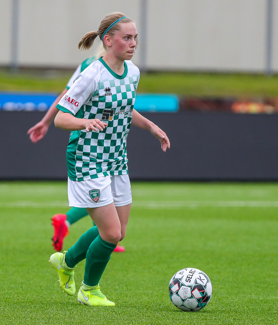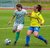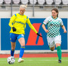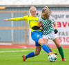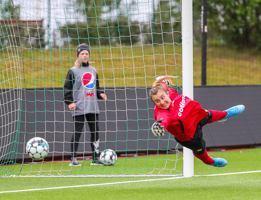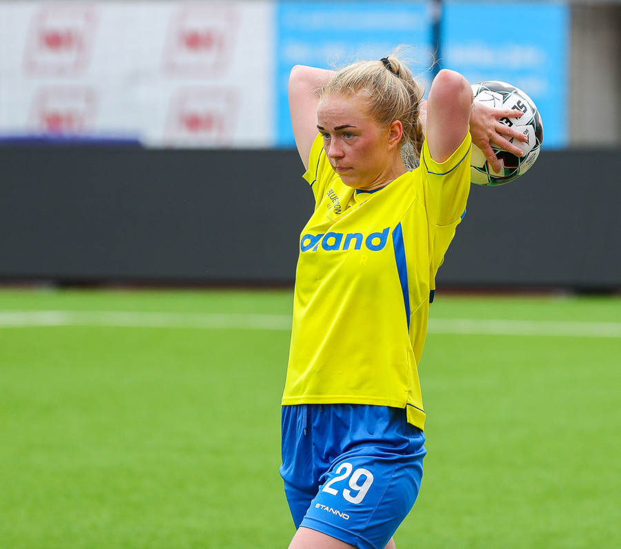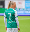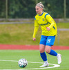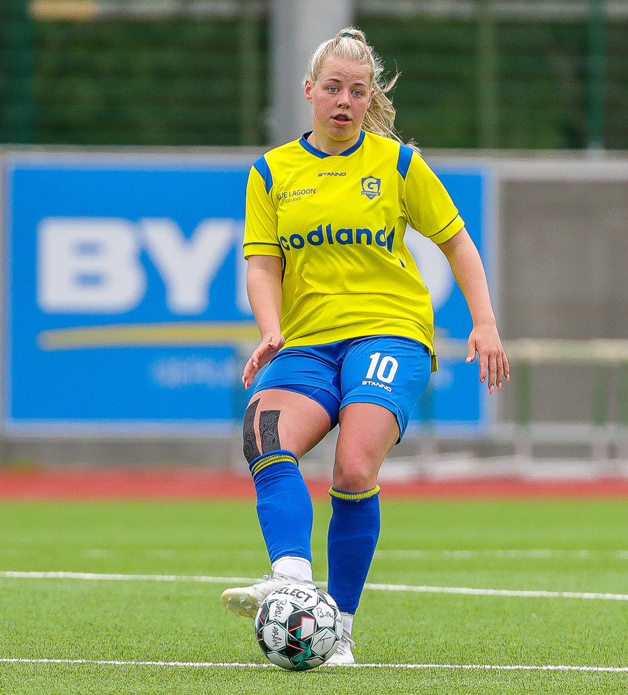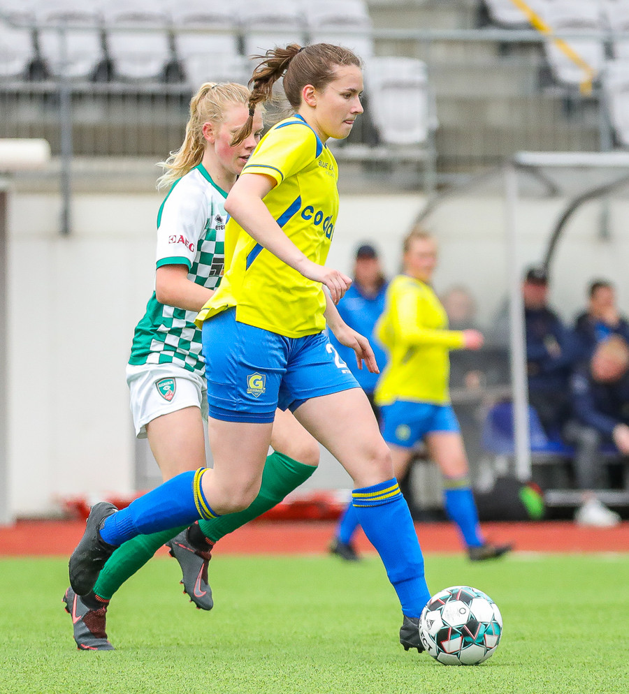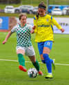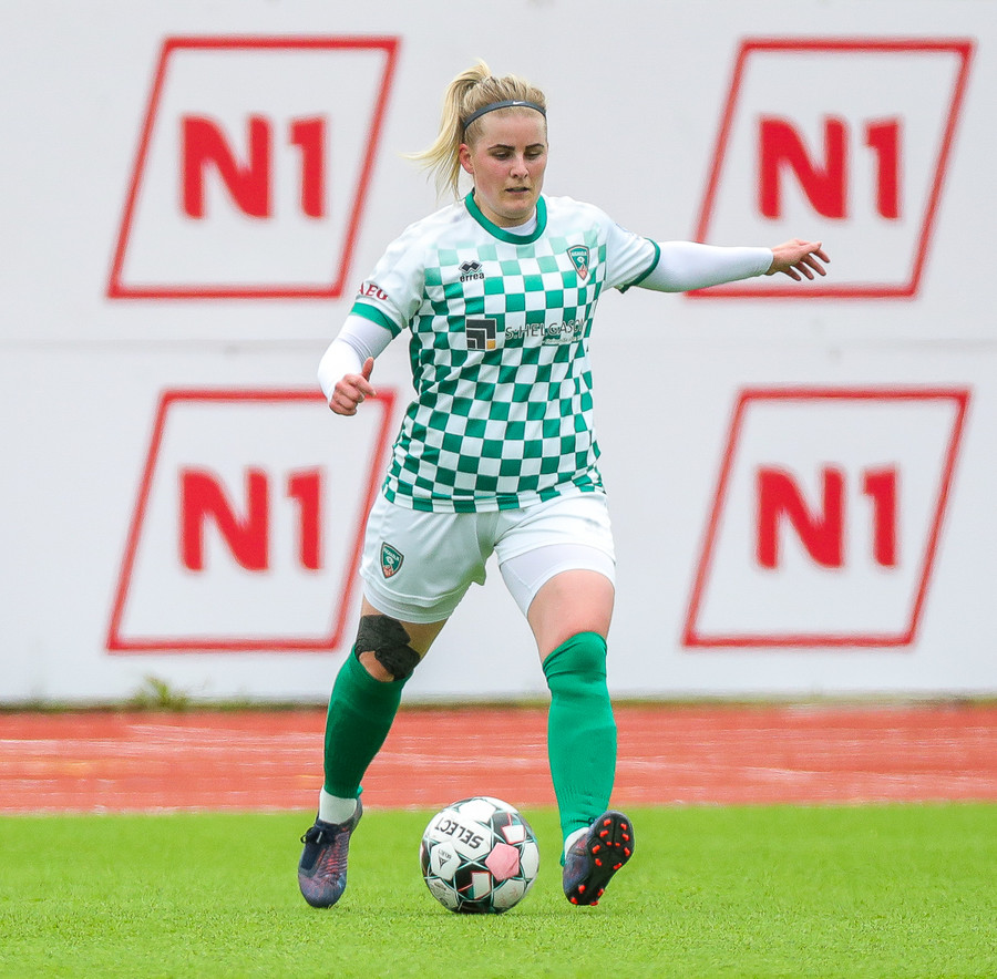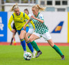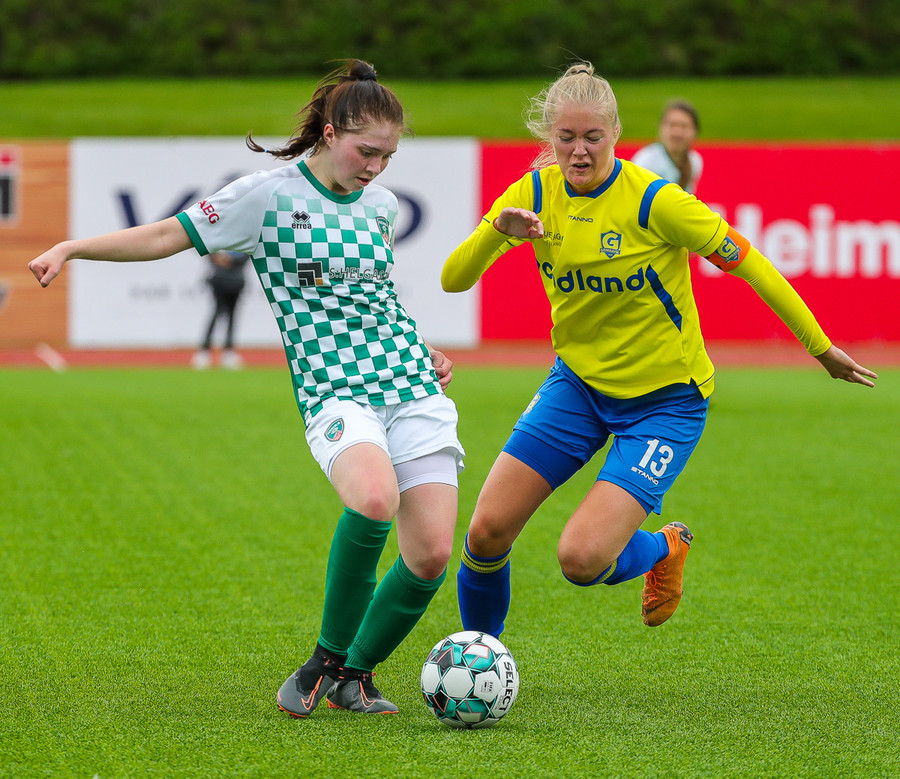 Vigdís fer illa með tvo varnarmenn en í staðinn fyrir að skjóta á markið reynir hún að senda til hliðar en samherji kemst ekki í boltann.