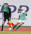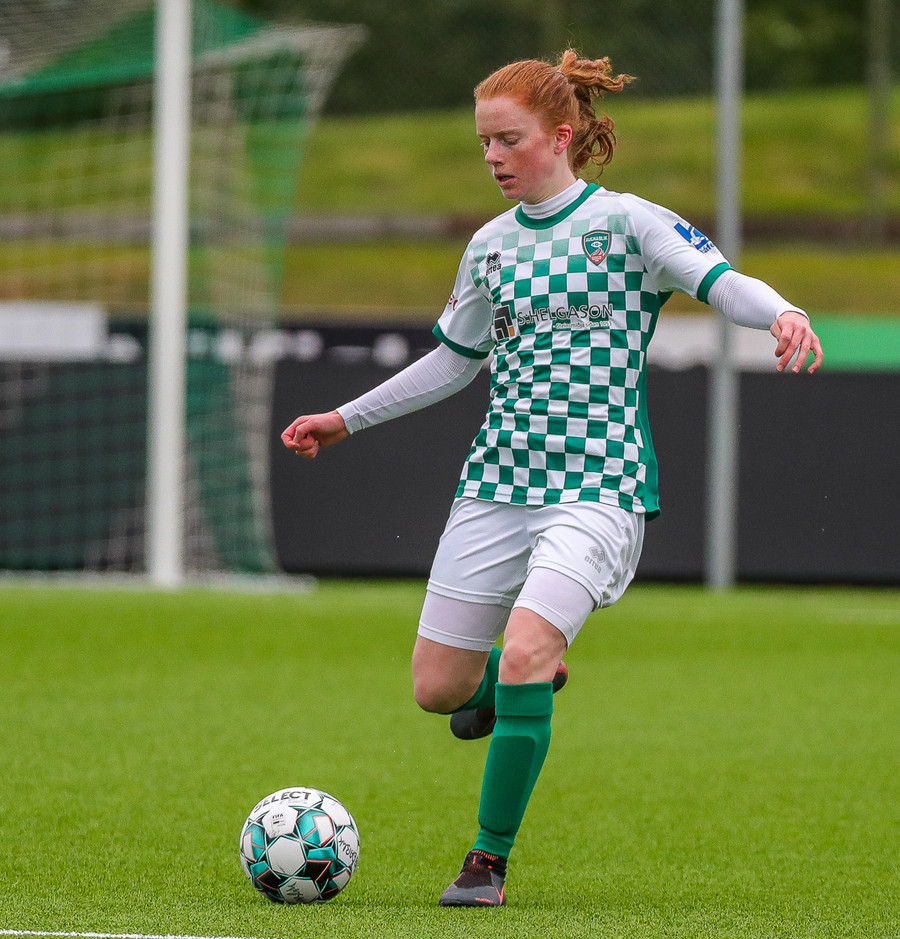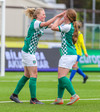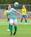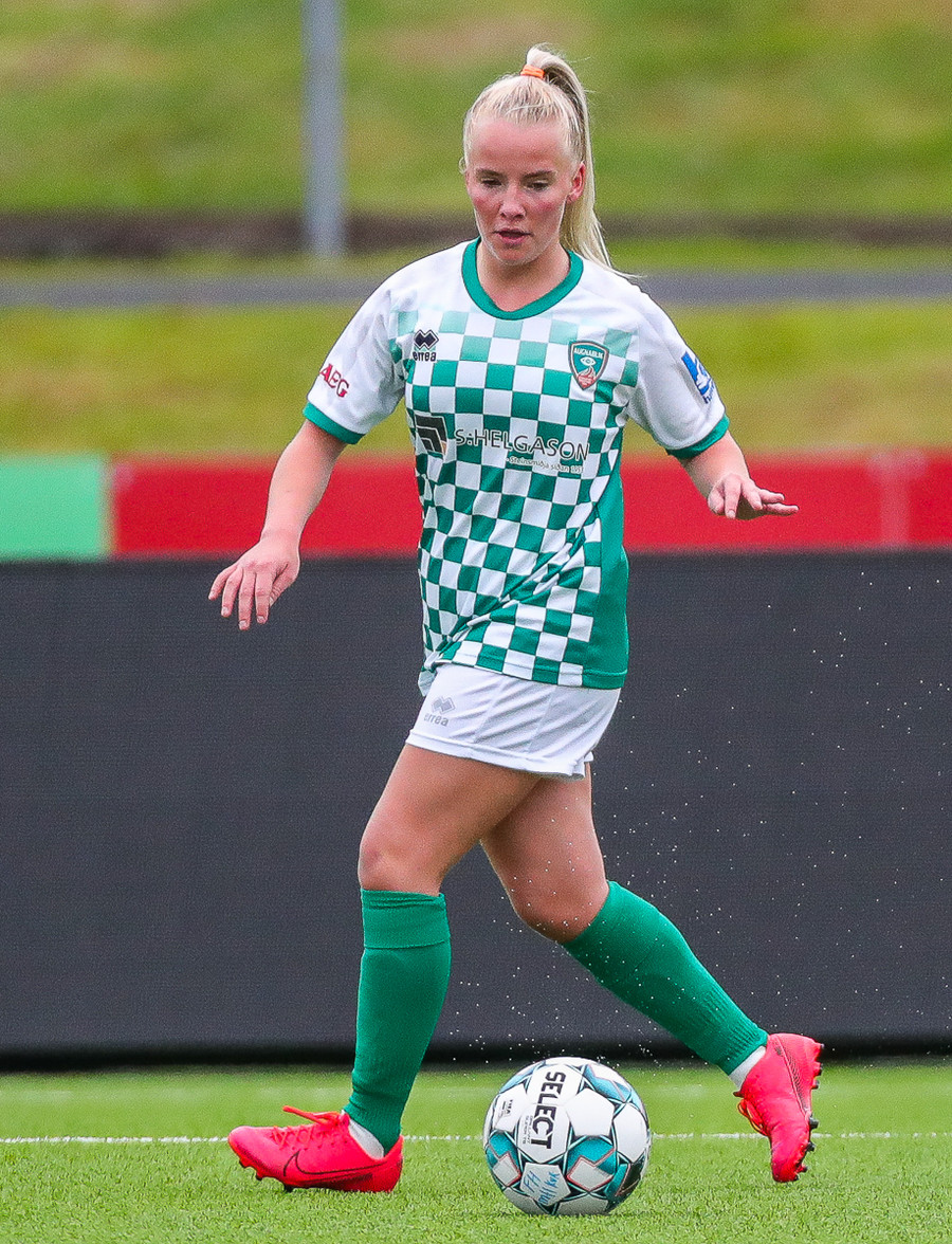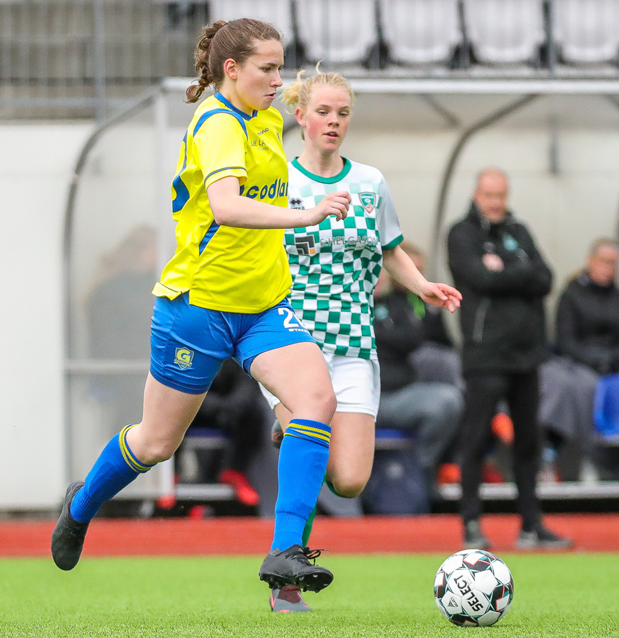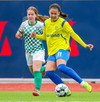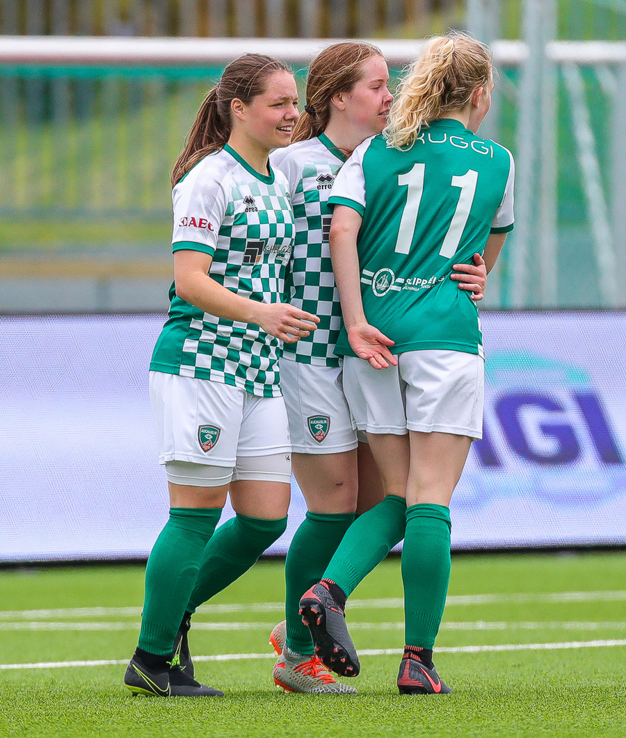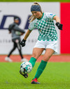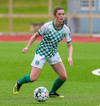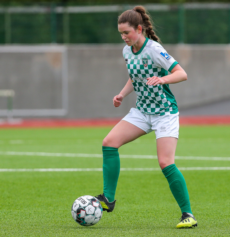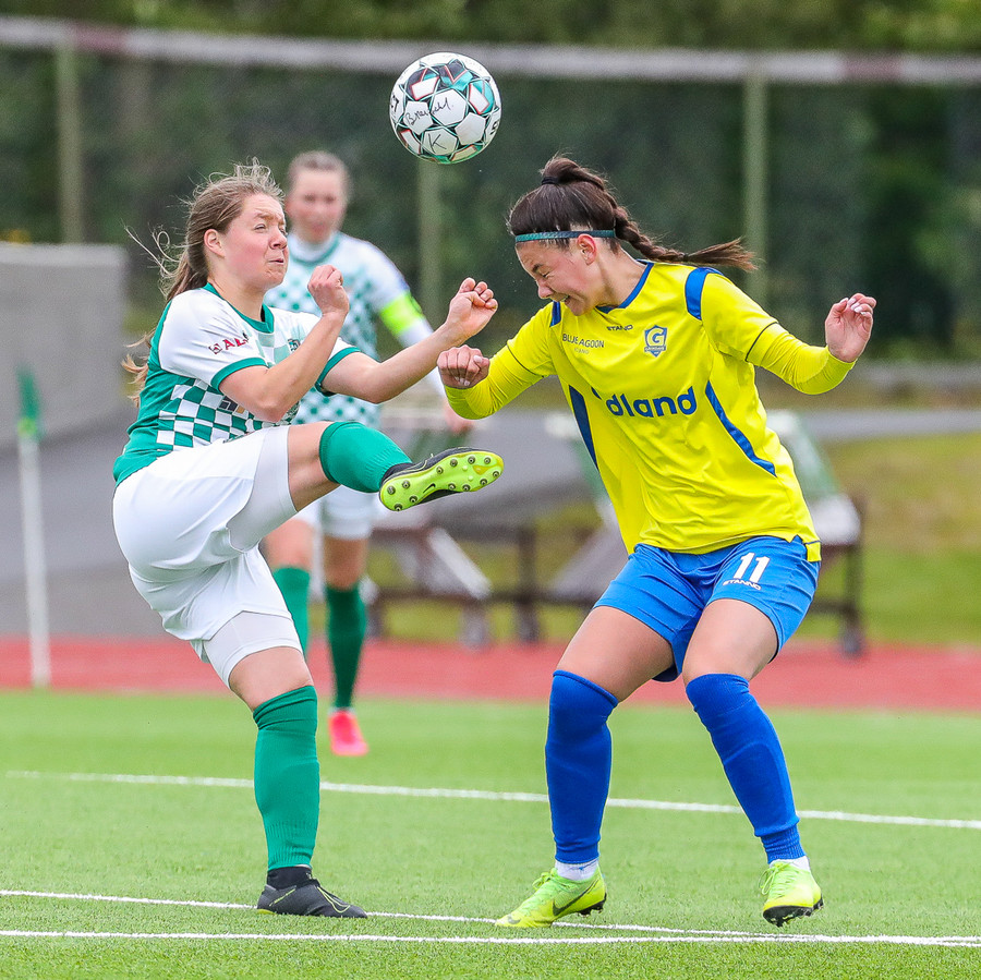 Vigdís fer illa með tvo varnarmenn en í staðinn fyrir að skjóta á markið reynir hún að senda til hliðar en samherji kemst ekki í boltann.