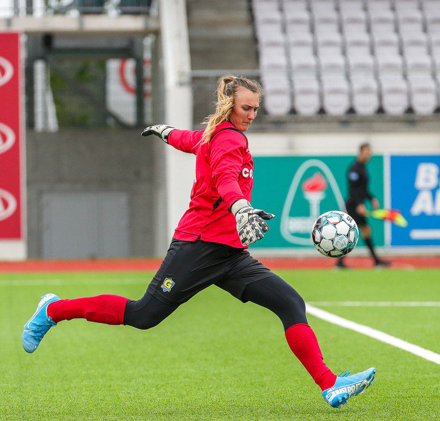 Una reynir skot frá miðju. Um að gera að prófa en þetta var aldrei líklegt. Augnablik sækja hratt og Írena reynir skot fyrir utan teig beint á markið.